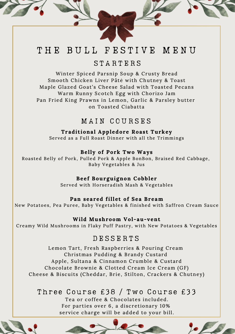 Please download and fill in the Festive Checklist and return to thebull.allen@btconnect.com or drop off at The Bull.